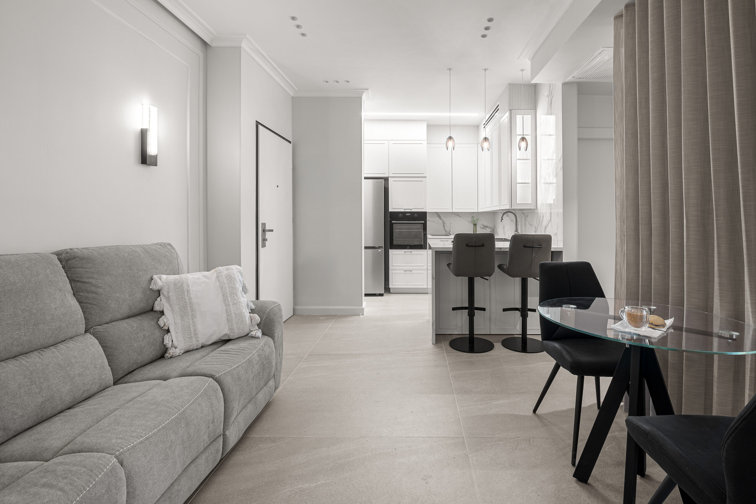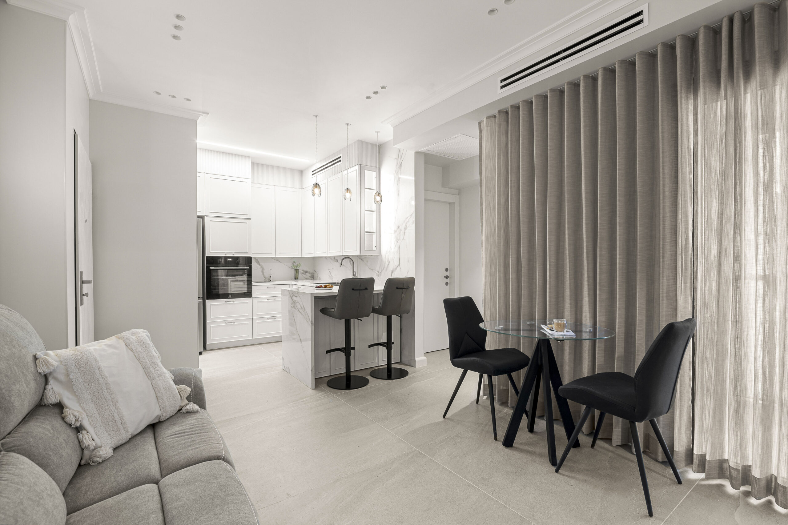 מטבח הלסינקי שואב השראה מהעיצוב הסקנדינבי – מינימליסטי, מרווח ואלגנטי, עם שילוב של שיש לבן ופרטים חכמים שמדגישים נוחות, ניקיון ועיצוב יוקרתי.